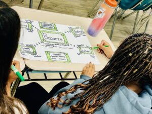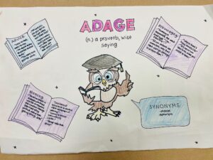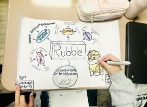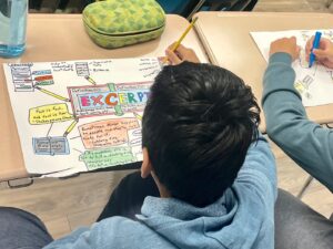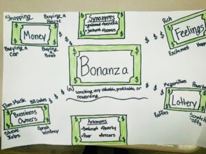8th graders in Mrs. Kiick’s ELA classes at Union Middle School are creating Semantic Maps of their Vocabulary Workshop terms. The goal is to make the new terms real to the students and not just focus on memorizing the words. Not only are they are writing their assigned terms in the center of their posters, including definitions, parts of speech, synonyms and antonyms from their workbooks, but they are also brainstorming their own subcategories and ideas/ examples to illustrate real life applications of the new words. In the end, they will be more likely to use the new terms in speaking and writing, and recognize them when reading and listening! Lastly, their posters will be scanned into a slideshow to use as an additional study tool.