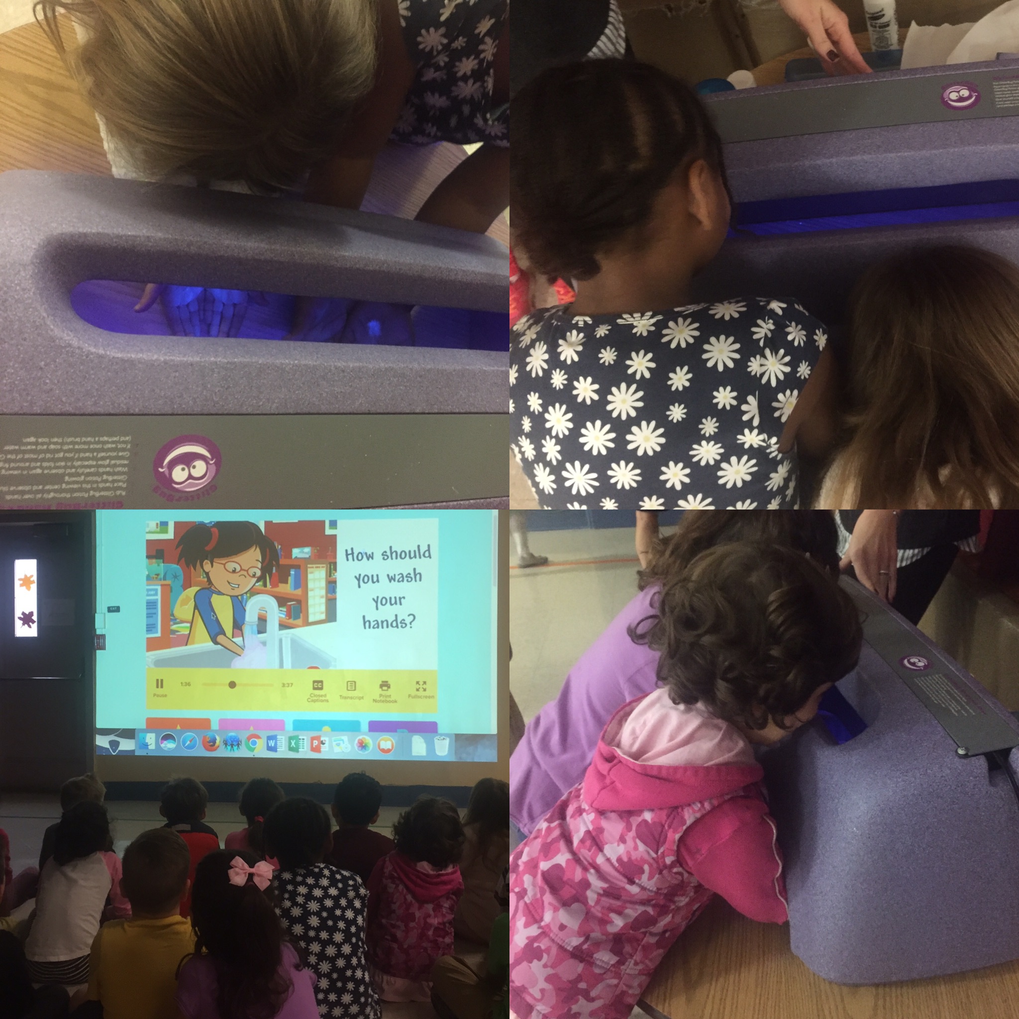 Students at the Kindergarten Center are learning about the importance of hand washing. Nurse Erica demonstrated the importance of hand washing through the use of the glow box. Glow in the dark "germs" were put on each child's hand. When they looked at their hands inside the glow box, the germs glowed but after a good scrubbing, the "germs" were gone! … [Read more...] about GLOW Away Germs!