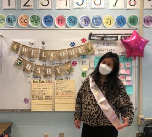 The boys and girls in Ms. LaSpisa’s 2nd grade class did a fun math and writing activity. They figured out if Ms. LaSpisa’s “baby bump” was more or less than one meter using ribbon. In addition, students created a picture graph of their gender predictions. Twelve students predicted a girl and four students predicted a boy. In writing, the students created advice for Ms. LaSpisa on how to take care of a baby! Thank you, Ms. Sommese and Ms. Masiak,+6 for all the planning.