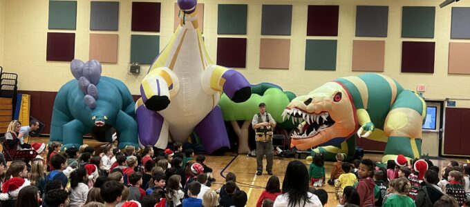 Dinoman! visited the school today and took students on a trip throughout the Mesozoic Era. The colorful show of giant inflatables asked the question: How do we know dinosaurs were here? What is a fossil and how are they made? We thank the Lincoln PTA for sponsoring this program. … [Read more...] about Dinoman! Visits Lincoln School
