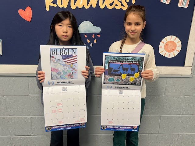We are proud to recognize two Pierrepont School students, Hanna Lee and Rosa Amine, for their outstanding achievement in the Bergen County “My County” Poster Contest. This annual contest is held each April during County Government Week and is open to all 4th-grade students across Bergen County. Hanna and Rosa were both selected as Honorable Mention winners. Their amazing artwork is featured in the 2025 Bergen County Clerk’s Election Calendar. Congratulations, Hanna and Rosa, on this remarkable accomplishment!