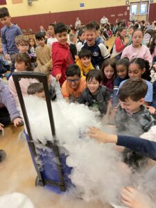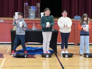 The PTA sponsored a Funtastic Science assembly for the school. Students inched their way closer to Miss Wanda as she created ice, made gas expand, and used chemistry to absorb water. It really was “funtastic science!”