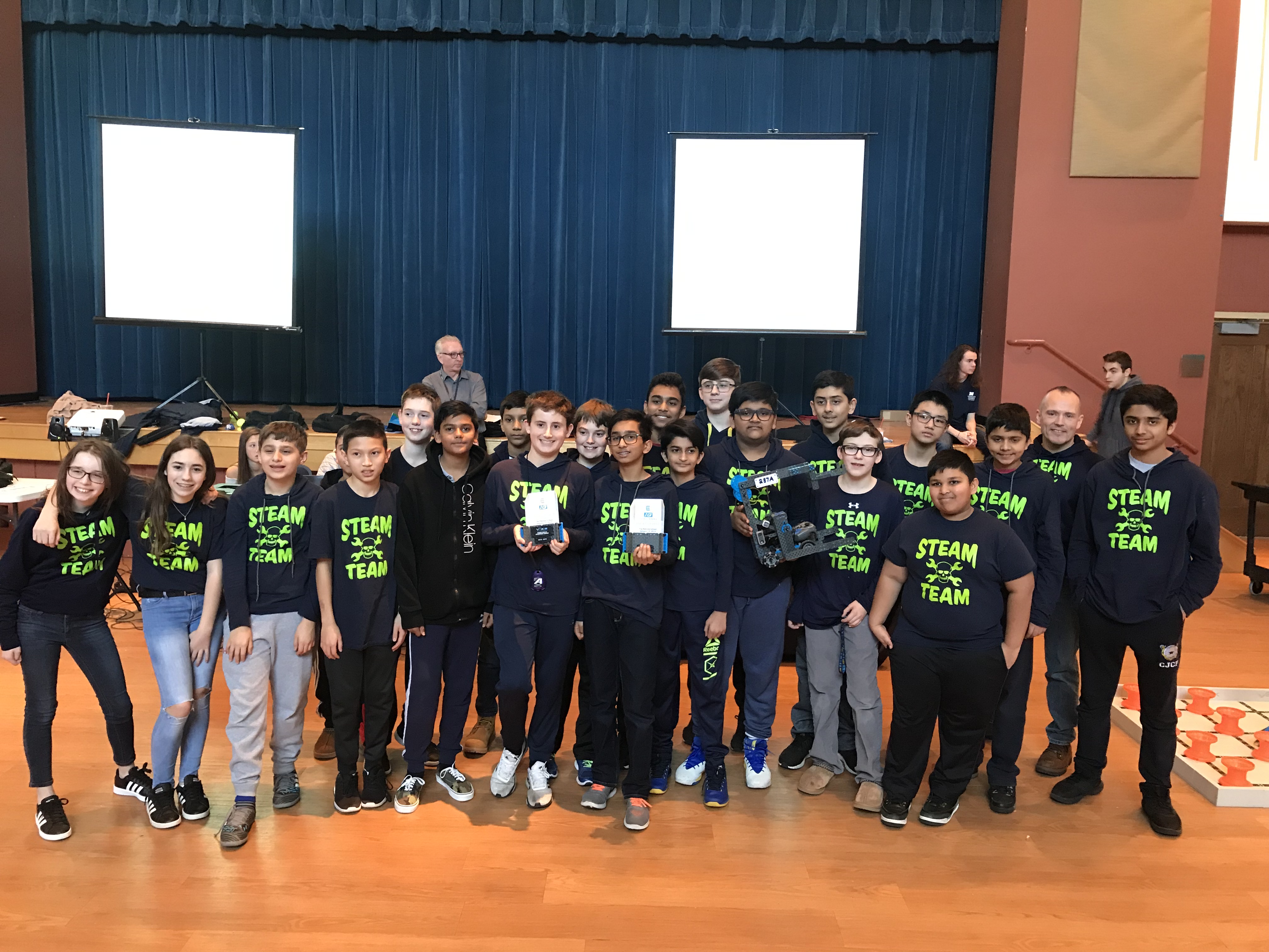 The STEAM Team won two awards at their latest competition: a first place trophy for “robot skills” and a second place trophy for “team skills.”