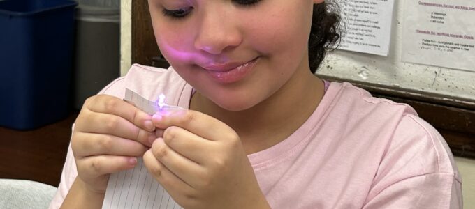 Students in Mrs. Colucci and Mrs. Barone’s 4th-grade science class are exploring the wonders of electricity! Using a battery and aluminum foil, they created circuits to power an LED bulb. When built correctly, the bulb lights up. You can see these happy faces also light up with pride in their success!