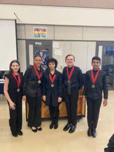 Members of the SATB Mixed (Soprano, Alto, Tenor, Bass) Choir – CJ Ackermann, Bella Cabrera, Maia Floresca, Alexandra Rodriquez Del Busto and Krithik Saravanan.