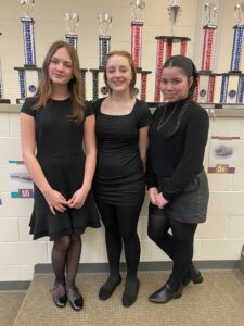 Members of the SSAA Treble (Soprano 1, Soprano 2, Alto 1, Alto 2) Choir – Gwen Allen, Mariana Brochero, and Mia DiLorenzo.