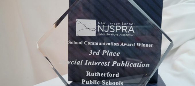 The Rutherford School District won statewide recognition for the second year in a row for communications. Hosted by the New Jersey School Public Relations Association (NJSPRA), the annual School Communications Awards recognize outstanding print and electronic supporting material in New Jersey education communications programs. This year, Rutherford Public Schools won 3rd Place in the Special Interest Publication category for the four-page newsletter mailed by the district in February. The mailer included upbeat stories like staff spotlights, which called attention to those who went above … [Read more...] about Rutherford school district wins school communications award For the second year in a row