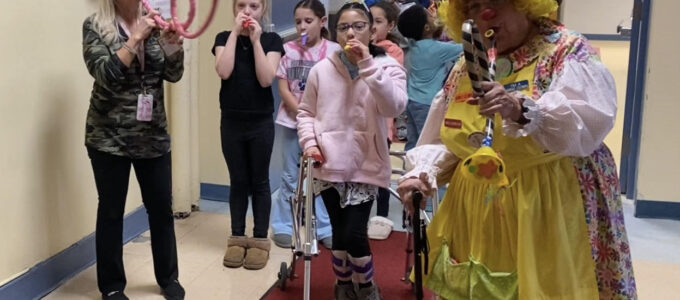 Gilly, the Caring Clown, came for a visit on our Day of Play! Gilly helped Ms. Monochello's second-grade class make original kazoos and led the students as they paraded the halls playing music. When the band learned it was Ms. Jimenez, the school secretary’s birthday, they serenaded her with the Happy Birthday song. … [Read more...] about Kazoo Parade