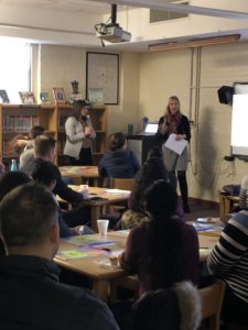 Mrs. Rachel Mejias, Reading Specialist, and Ms. Jennifer Krawiec, Grade 1 Teacher, presented a workshop this morning titled “Practical Strategies for Strengthening Emergent Reading Skills”. Parents from the Kindergarten Center and Lincoln School join parents from Washington School in the school library for the workshop.