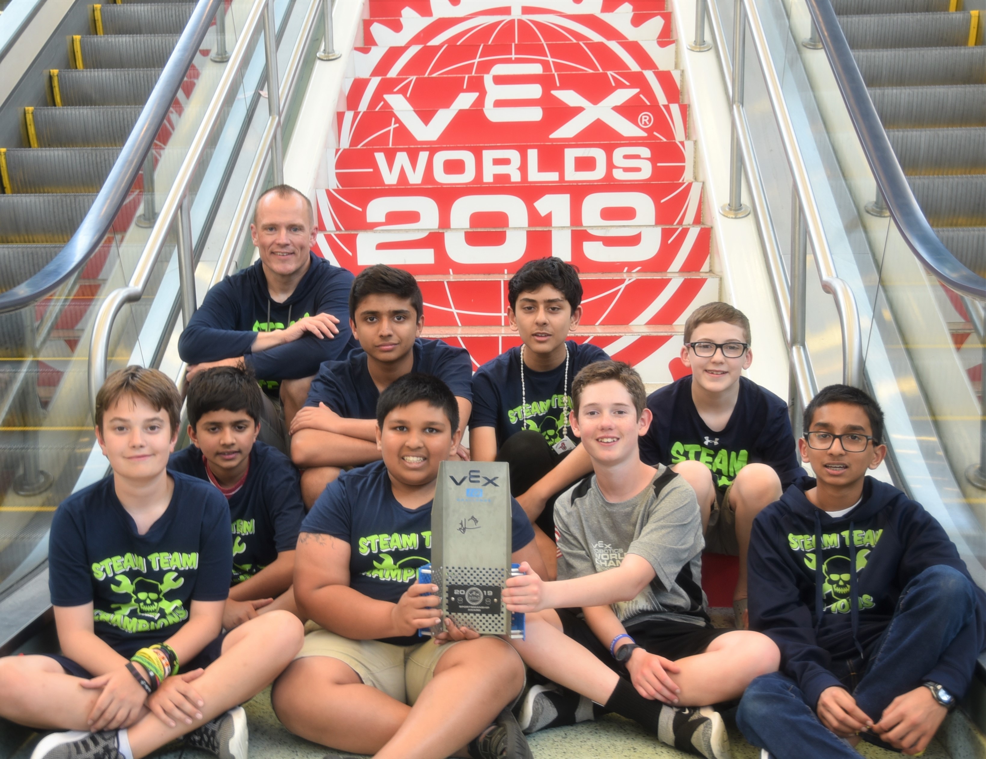 The teams competed in a four day competition where they engaged in a series of robotic engineering challenges including timed challenges with customized robots. This year’s competition included 23,000 VEX IQ teams with over 800 teams at the VEX IQ World Championship. There were over 30,000 people in attendance at the world championship from 46 different countries. Team 99900, a Canadian team from Ontario, is this year’s VEX IQ World Champion.