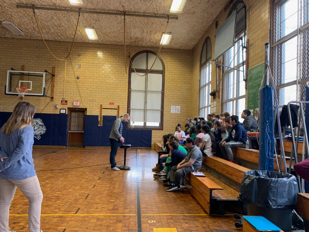 Mr. Jesse Newman, a visual effects artist, presented a collection of his work to a group of students in the school gymnasium. He spoke about the creative and, at times, difficult processes that go into making his visual effects. “I showed the students this video project where my customer asked for a galaxy to turn into a hurricane, which sounds very easy when you say it, but it takes a lot of work and creativity to find how to edit and fit two completely different images and transition between them,” he said. When asked what he enjoys the most about his career, he replied, “I love my job because it’s constantly evolving and it’s creatively stimulating. I always face, but overcome, creative challenges.” Although it was his first time presenting at Pierrepont, Newman has experience giving presentations about his job at different events. He continued to speak to us about his thoughts on the school’s Career Day: “I think it’s great and important to have this career day for these young students because at this age, many kids are only exposed to or might only think there are four career paths they could go into: lawyer, doctor, teacher or police officer. I didn’t even know this was a possible career for me until I was in my senior year in college. So, it’s good for students to know early on that there are more professions in the workforce that they can go into.”