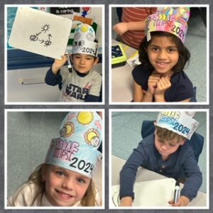 What does it mean? Our kindergarten students can tell you! This means that the moon, as it orbits the Earth, comes in between the sun and the Earth, blocking the sun. Our location has the sun being partially blocked, resulting in a partial eclipse, but exciting nonetheless! ![]()