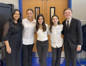 Congratulations to Union Middle School students CJ Ackermann, Maia Floresca, Felice Kakaletris, and Alexandra Rodriguez Del Busto for their phenomenal performance as members of the 2024 MEBCI Bergen County Middle School Choir on Sunday, November 24th at Ramsey High School in Ramsey, New Jersey! Ms. Tricia Lalla, Union Middle School’s Concert Choir teacher, was selected by the organization to serve as the choir’s conductor. Students sang a very challenging and diverse program that included Classical, French-Canadian Folk Music and Jazz music genres.