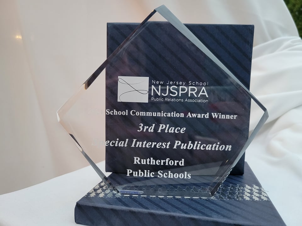 The Rutherford School District won statewide recognition for the second year in a row for communications. Hosted by the New Jersey School Public Relations Association (NJSPRA), the annual School Communications Awards recognize outstanding print and electronic supporting material in New Jersey education communications programs.