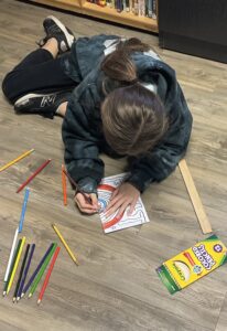The project began with a brainstorming session where students reflected on their discussions about community. Each student then created an individual panel, using crayons, colored pencils, and markers to visually represent their personal understanding of community and belonging. The panels feature key themes, images, patterns, and words that symbolize what it means to be a member of the Rutherford community. The completed mural stands as both a creative expression of each student’s perspective and a powerful visual representation of their collective exploration of community and connection.