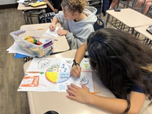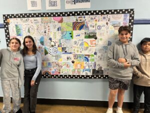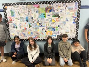 Seventh-grade students in Mrs. Collins and Mrs. Mac Millan’s classes recently completed a mural project following their reading of The War of the Wall by Toni Cade Bambara. This hands-on project served as a meaningful conclusion to a unit focused on the concept of belonging to a community. Throughout the unit, students explored how communities are defined by shared narratives, and how individuals contribute to the collective story. The mural project highlighted how each student, through their unique perspective and creativity, contributes to the broader narrative of Rutherford, illustrating the diverse yet interconnected ways in which everyone plays a role in the town’s community.