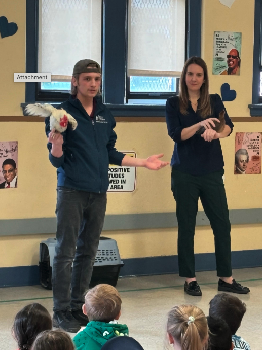 Last week, Farmer Aiden brought Ruby, a hen, and Max, a rooster, to the Kindergarten Center for a quick visit before leaving 12 eggs as part of our school’s hatching project! Students and staff were excited to hear all Farmer Aiden shared and loved the opportunity to pet Max or Ruby!
